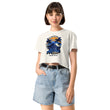 This crop top is made of 100% combed cotton, which makes the shirt extremely soft and more durable than regular cotton shirts. The relaxed fit and dropped shoulders ensure comfortable wear, while the cropped length makes it perfect for spring and summer.