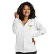 Designed with style and comfort in mind, this hoodie will quickly become your new favorite. It’s made from soft fleece inside and outside, with a sturdy metal zipper, convenient front pockets, and a hood with color-matched drawstrings.