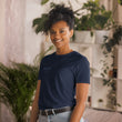 You've now found the staple t-shirt of your wardrobe. It's made of 100% ring-spun cotton and is soft and comfy. The double stitching on the neckline and sleeves add more durability to what is sure to be a favorite!